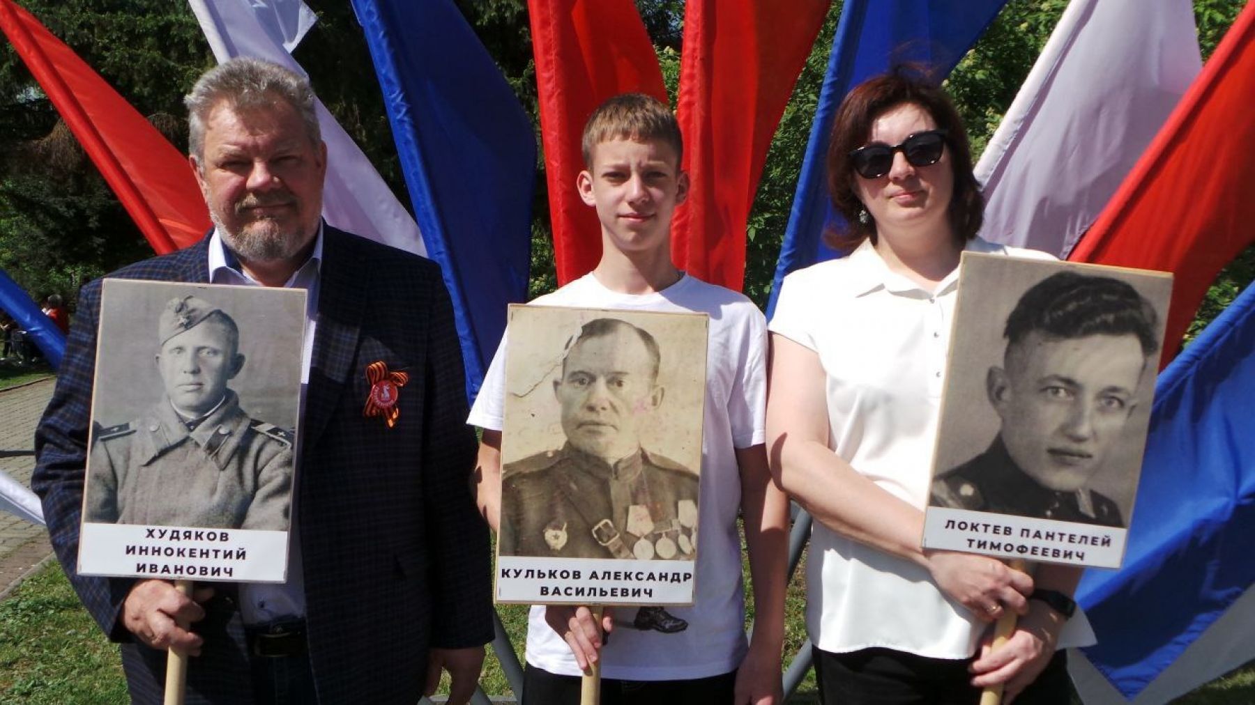 Семья Худяковых принимает участие в шествии "Бессмертного полка" с момента его образования в нашем городе. Они приходят на шествие с портретами своих дедушек и прадедушек.