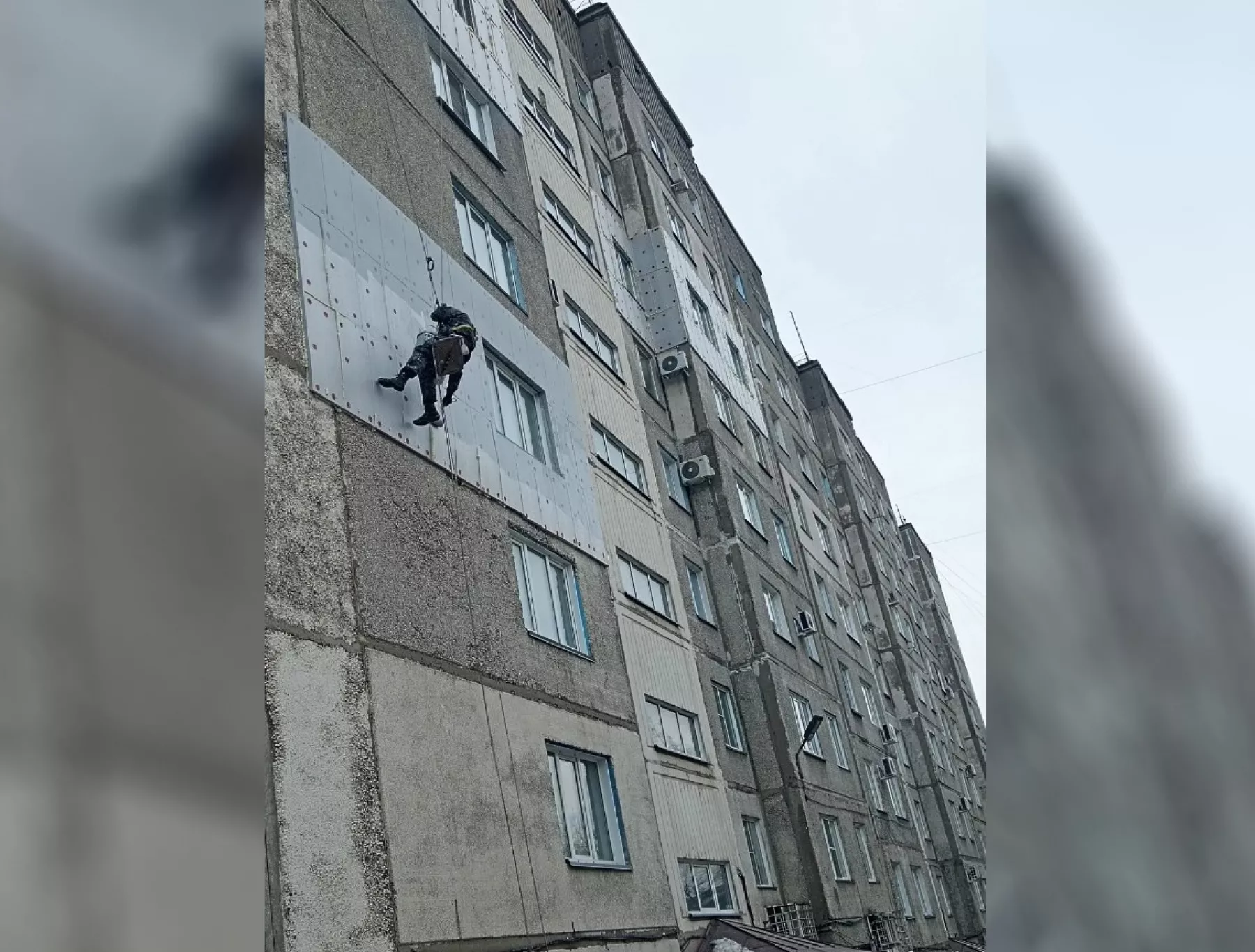 В зависимости от того, на какой высоте нужно работать, промальпинист спускается либо с крыши, либо его подцепляют снизу и он подтягивается наверх. Все объекты, те же многоэтажки, совершенно разные, везде есть свои особенности, которые учитываются командой.