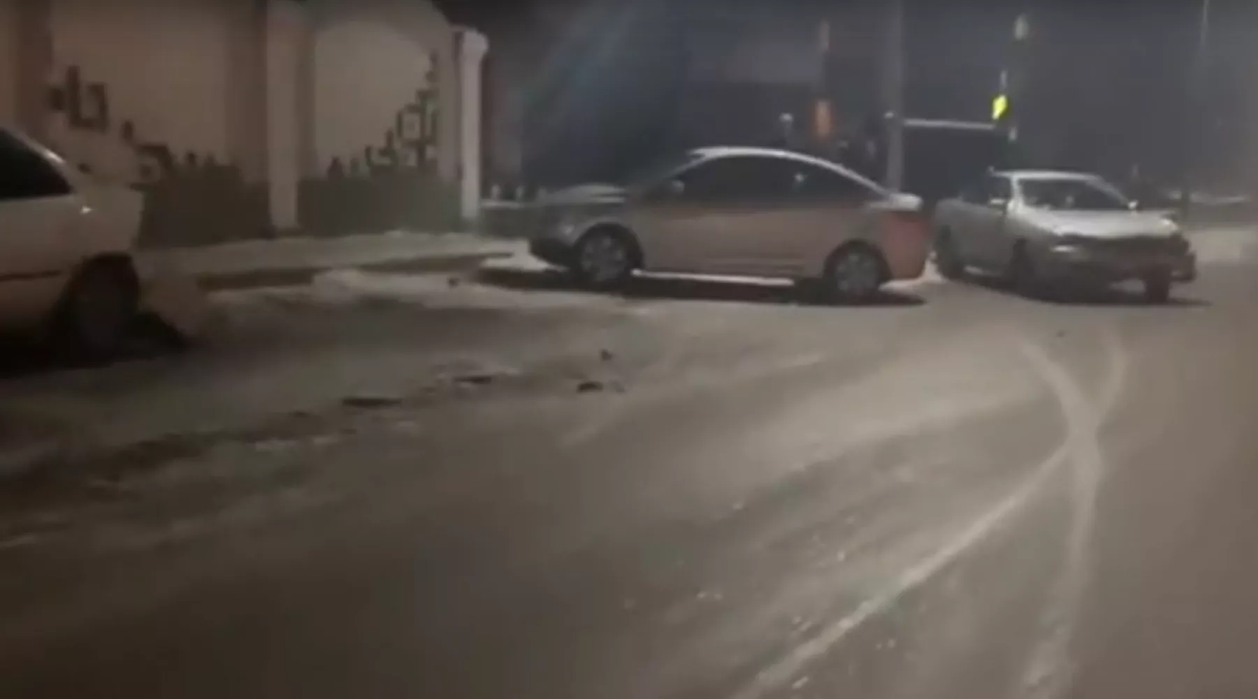 Автомобиль занесло и он врезался в две другие машины, которые были припаркованы на обочине дороге. Один из автомобилей получил довольно серьезные повреждение, у него сильно пострадала задняя часть, оторван бампер.