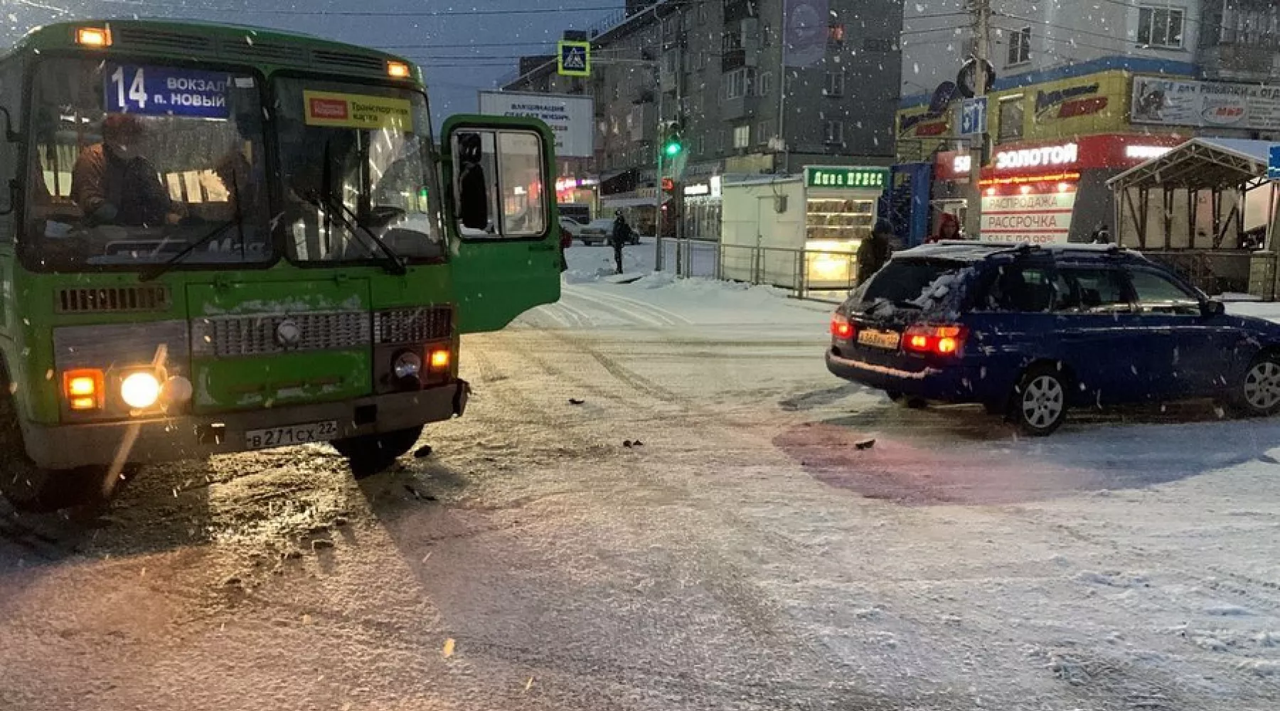 В одном ДТП участником стал маршрутный автобус №14. Он встретился с иномаркой на пересечении улиц Митрофанова и Вагонная. Судя по фото, удар бы не сильным, вероятнее всего пострадавших нет.