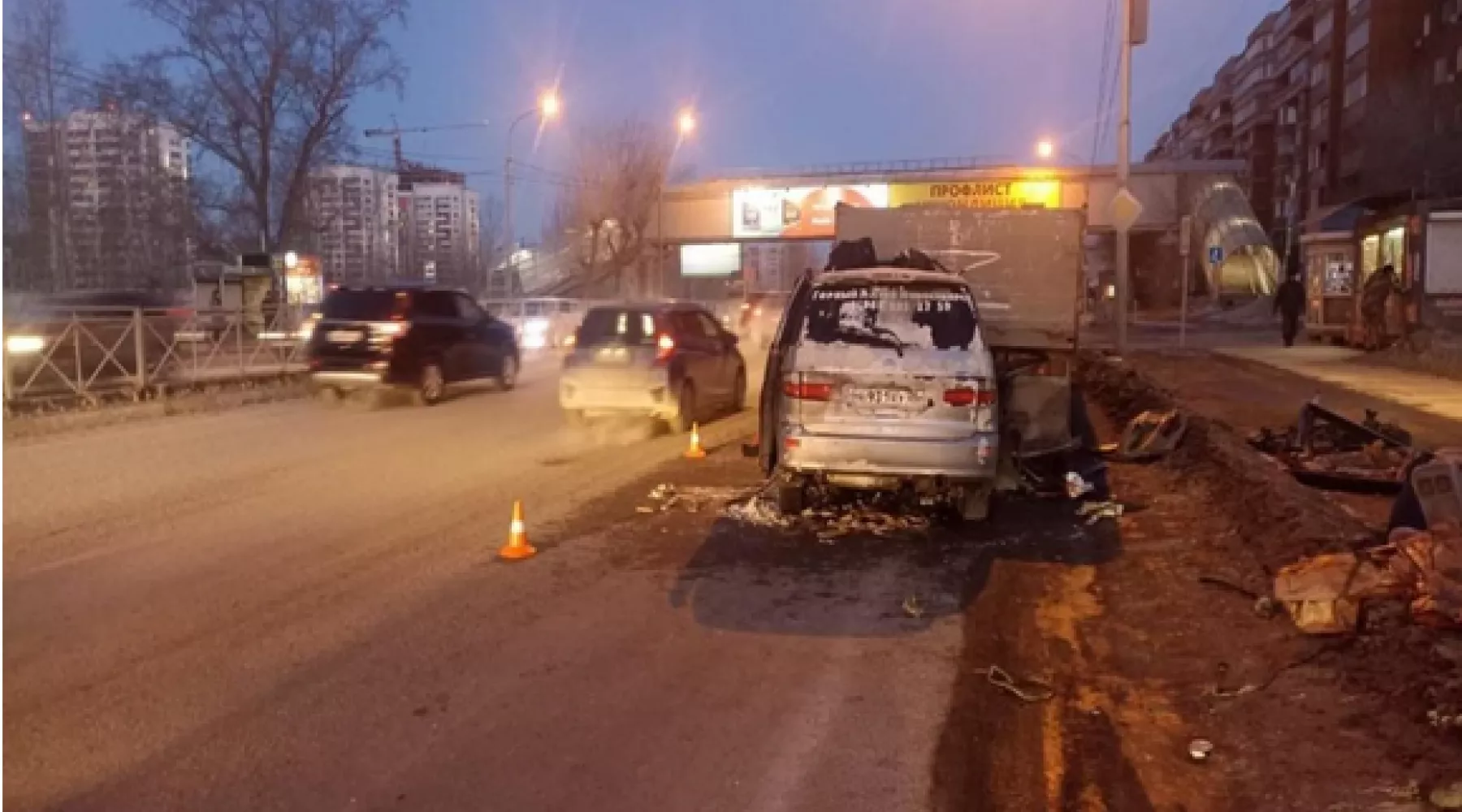 Авария произошла 15 марта, около 5:00 часов утра в Новосибирске. Автомобиль Toyota Ipsum залетел под прицеп КамАЗа. Легковой автомобиль от сильного удара превратился в груду искореженного металла.