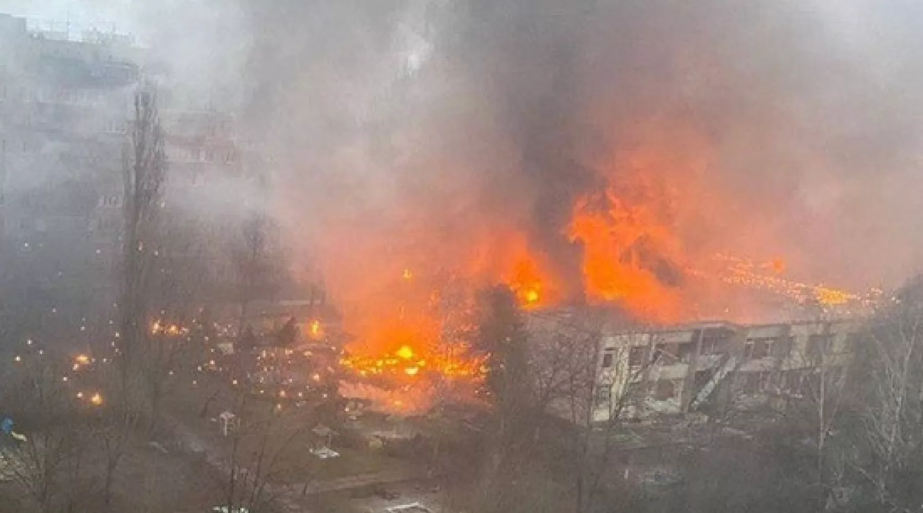 Известно, что вертолет упал рядом с детским садом. На видео, появившемся в сети, видно, что в здании полностью выбило окна.