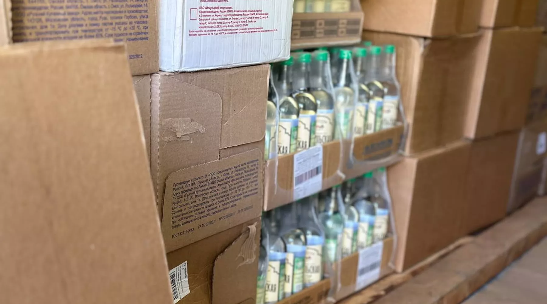 При осмотре помещения полицейские обнаружили и изъяли более 2,3 тысячи литров спирта, 100 бутылок по 0,5 литра с готовым алкоголем, емкость для смешивания, фильтрации и розлива, а также пустые стеклянные тары и крышки.