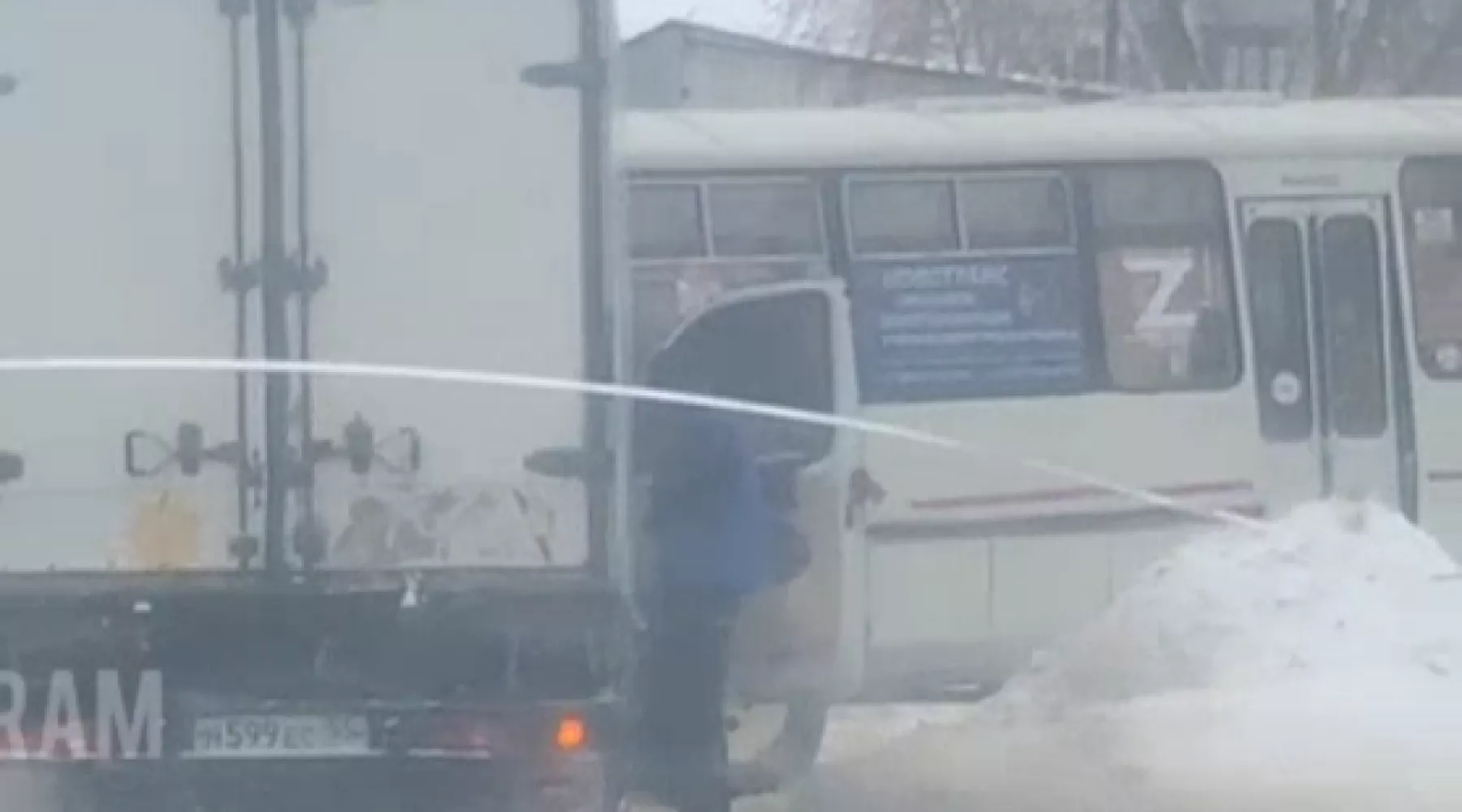 Детали происшествия пока не сообщаются. Но на видео видно, как грузовой автомобиль столкнулся с автобусом.