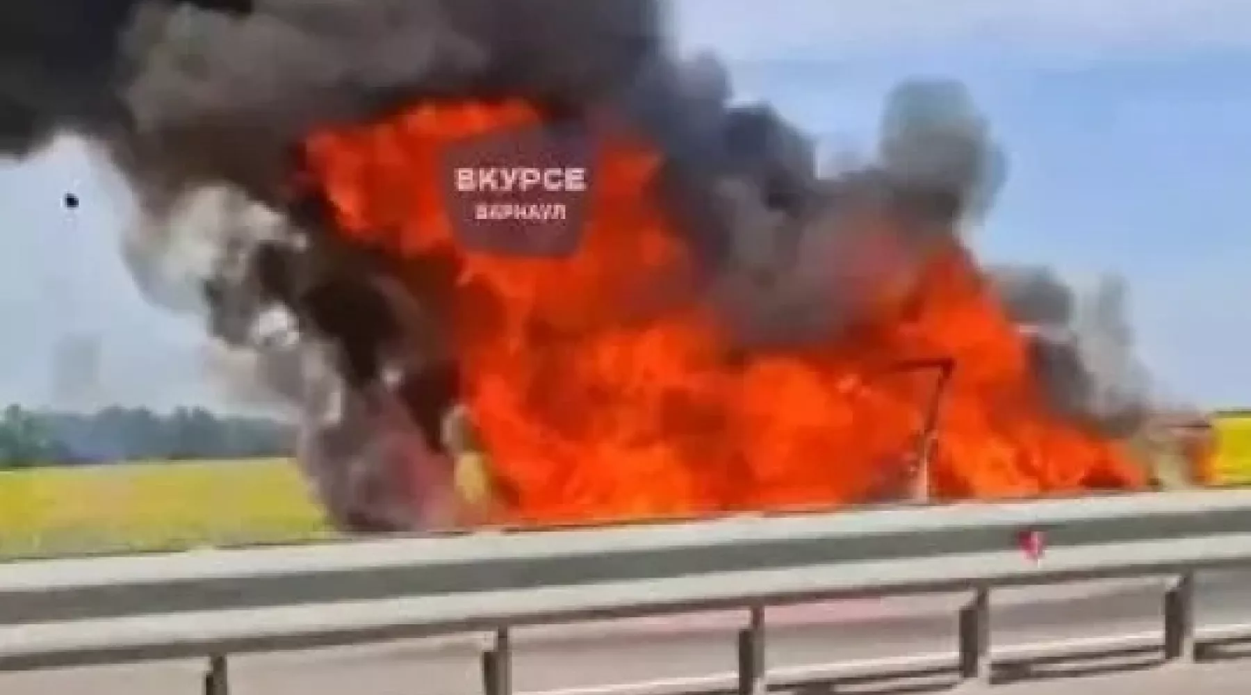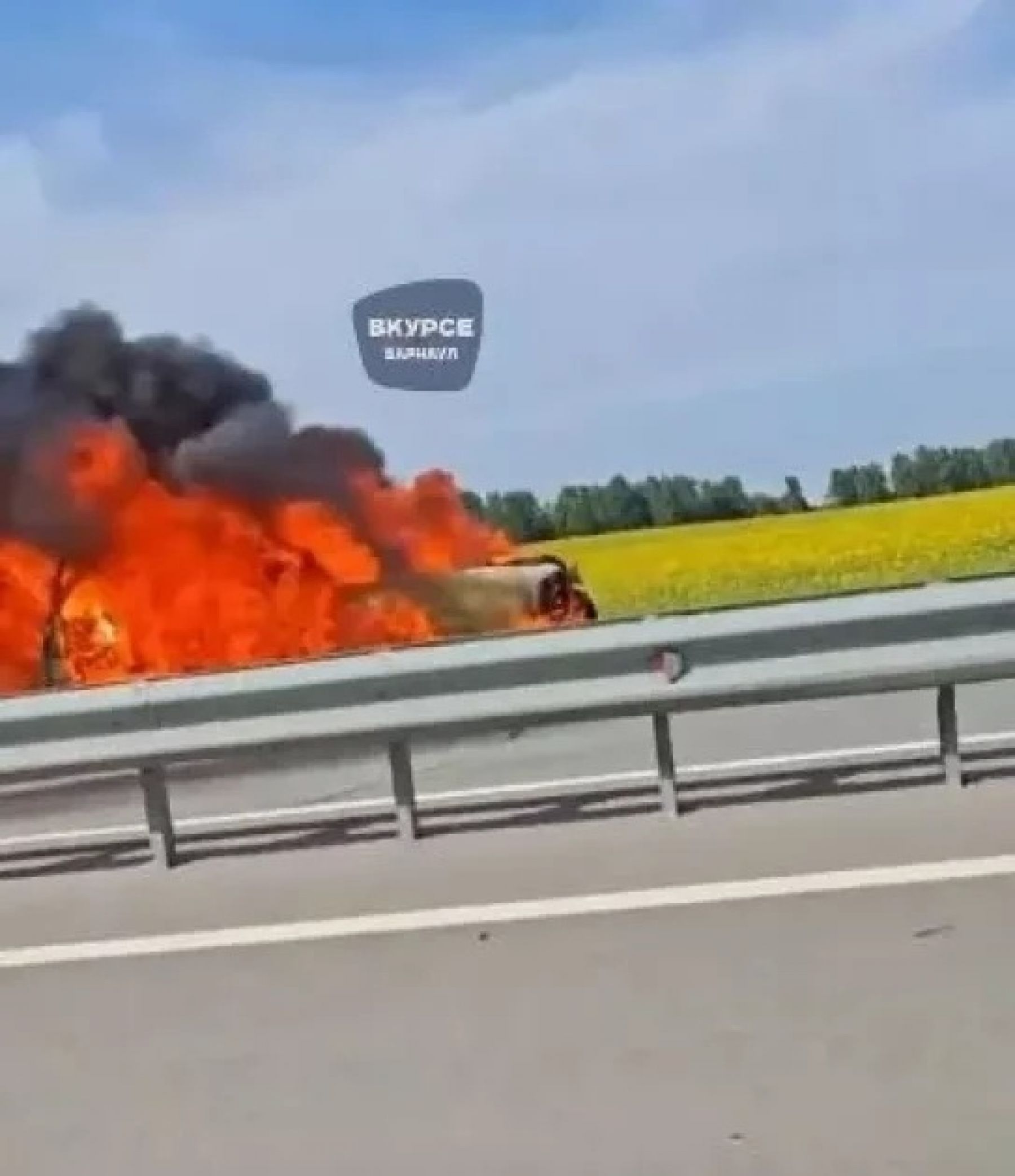 Днем 27 июля на трассе Бийск – Барнаул загорелся автомобиль. Кадры происшествия появились в телеграм-канале «В курсе 22», пишет «Толк».