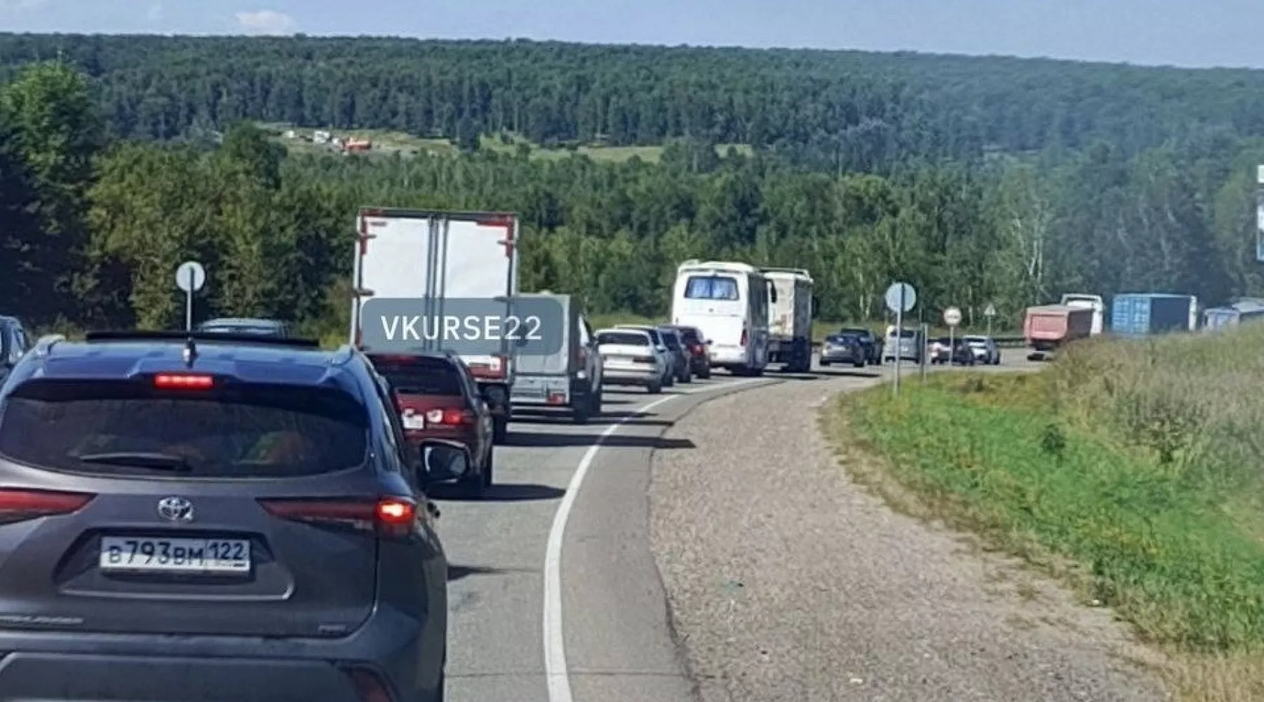 Очевидцы сообщают о ДТП на трассе Бийск – Барнаул, рядом с селом Полковниково, и образовавшейся многокилометровой пробке в обе стороны. Кадры с аварией появились в телеграм-канале «В курсе 22».