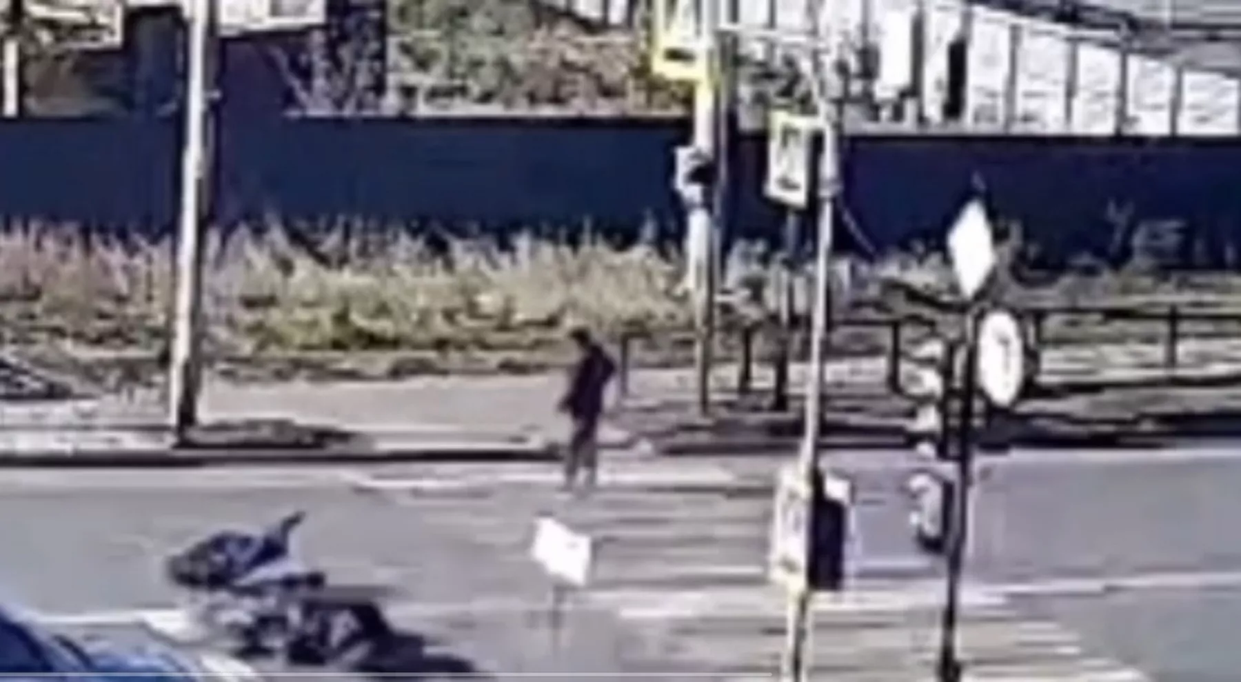 В Бийске на пешеходном переходе у «Ленты» мотоциклист сбил пешехода. После столкновения пешеход, водитель мотоцикла и его пассажир упали на дорогу. Видео с ДТП появилось в телеграм-канале «В курсе 22».