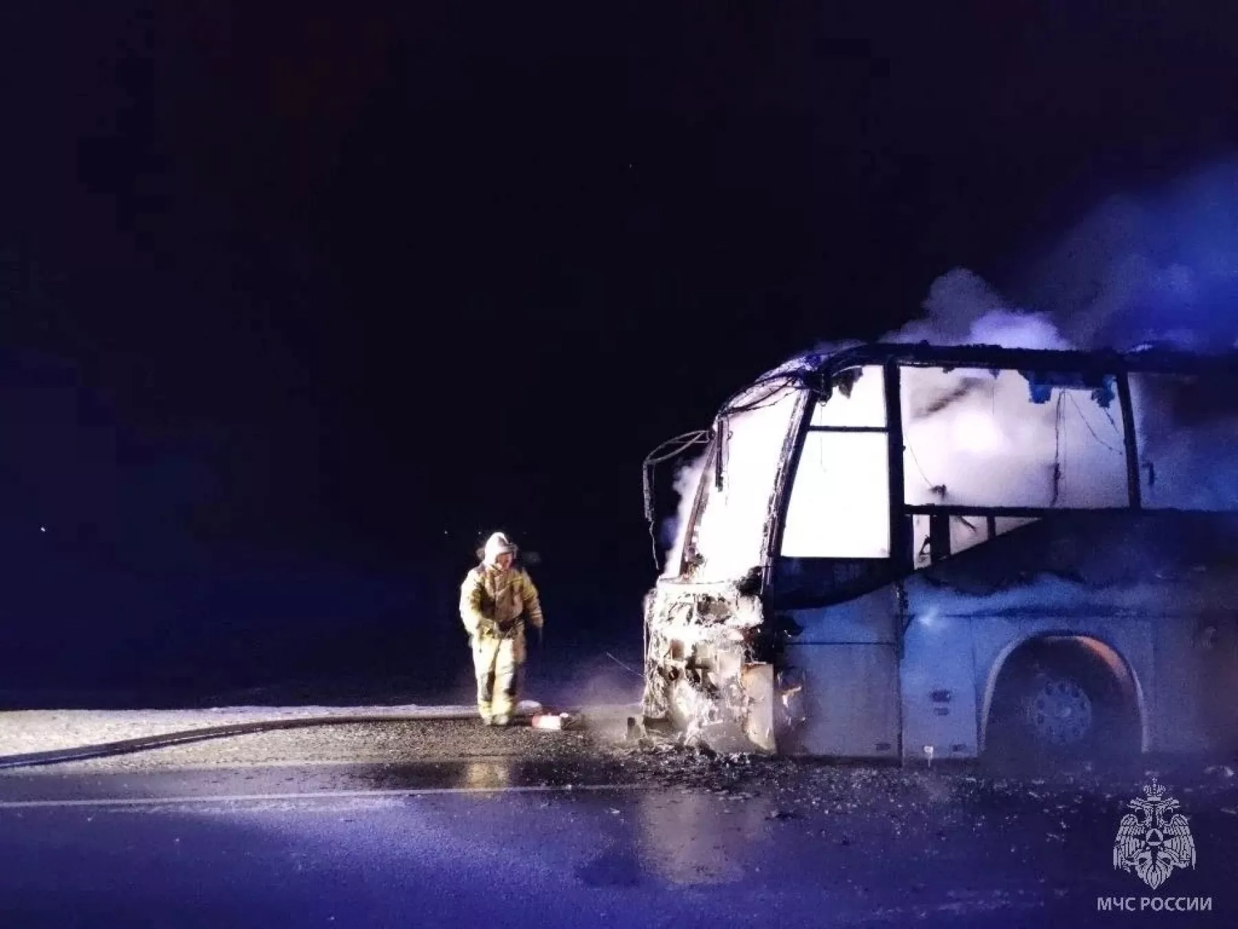 В работе по ликвидации огня были задействованы четверо пожарных на двух автоцистернах. Техникой ДСУ пятеро пассажиров и водители доставлены в стационарный пункт обогрева (кафе), остальные пассажиры отправлены попутным транспортом до места назначения.
