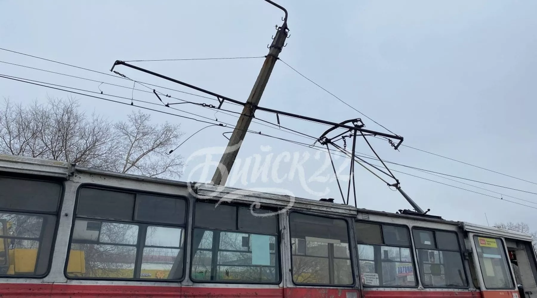 В Бийске столб упал на трамвай. Об этом сообщили очевидцы в телеграм-канале "Бийск 22".