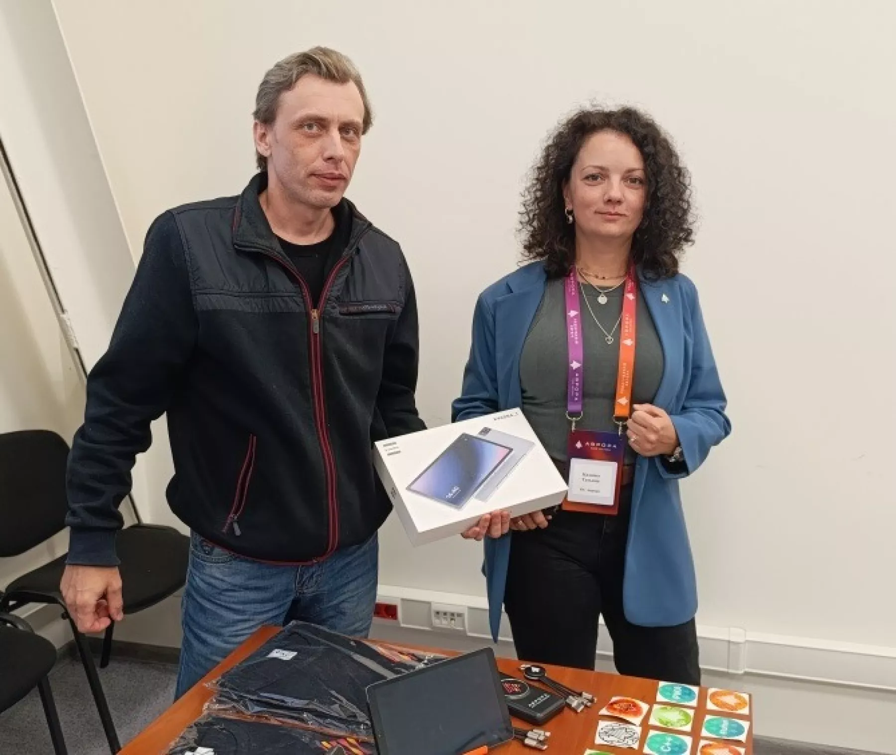 Важным событием встречи стала выдача нового устройства для тестирования одному из активных бета-тестеров Роману Романову. Энтузиаст первым в истории программы получил планшет предрелизной версии KVADRA_T на ОС Аврора для изучения и обратной связи команде разработки.