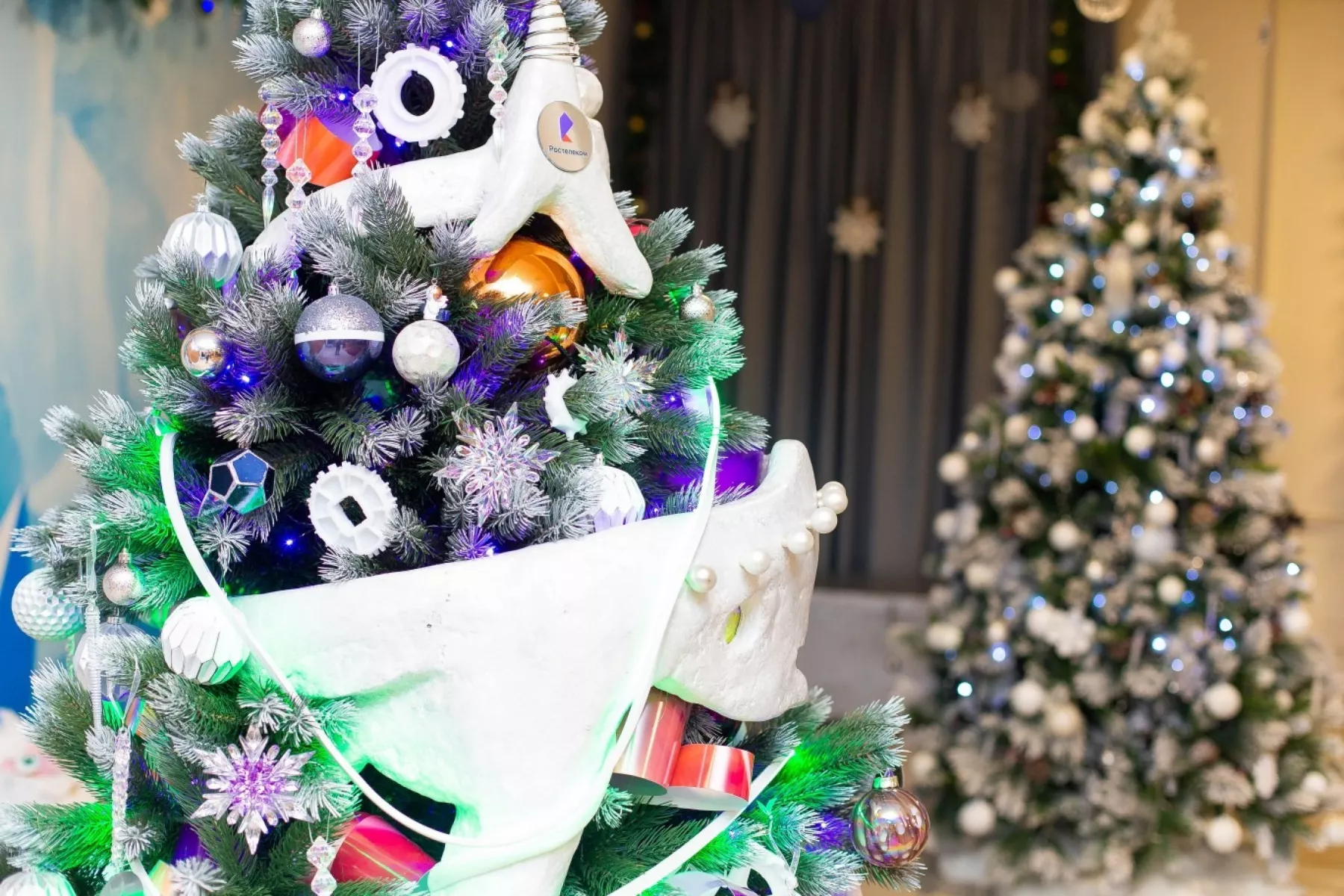 В тронном зале Деда Мороза гостей третий год подряд встречает «говорящая» футуристическая ёлка, созданная с применением искусственного интеллекта. «КиберЁлка» не только зажигает гирлянды и включает музыку, но и звонит Деду Морозу, выполняет различные просьбы ребят, превращая резиденцию в сказочную мастерскую чудес.