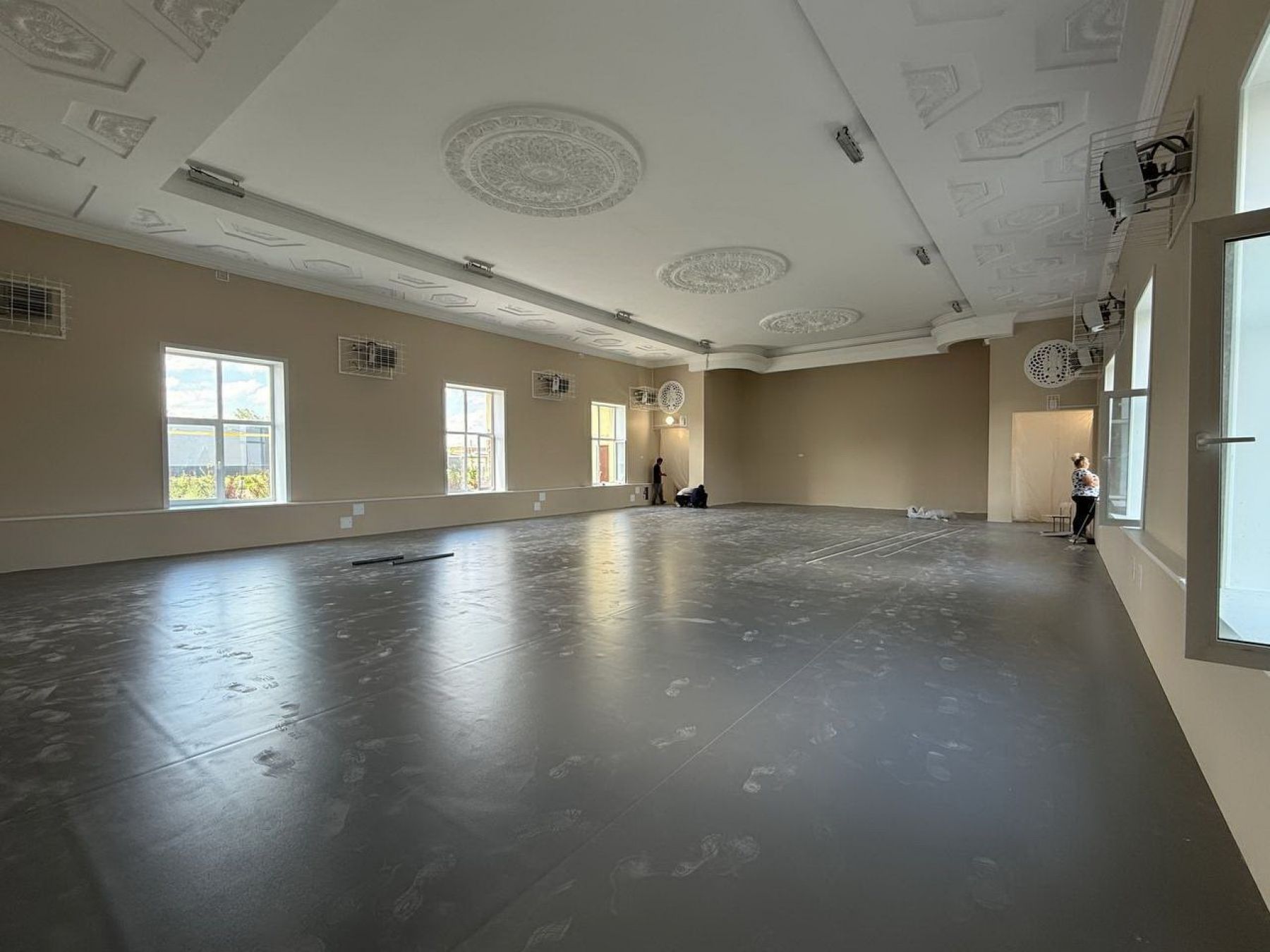 - в большом зале залит и выровнен пол, постелен линолеум.