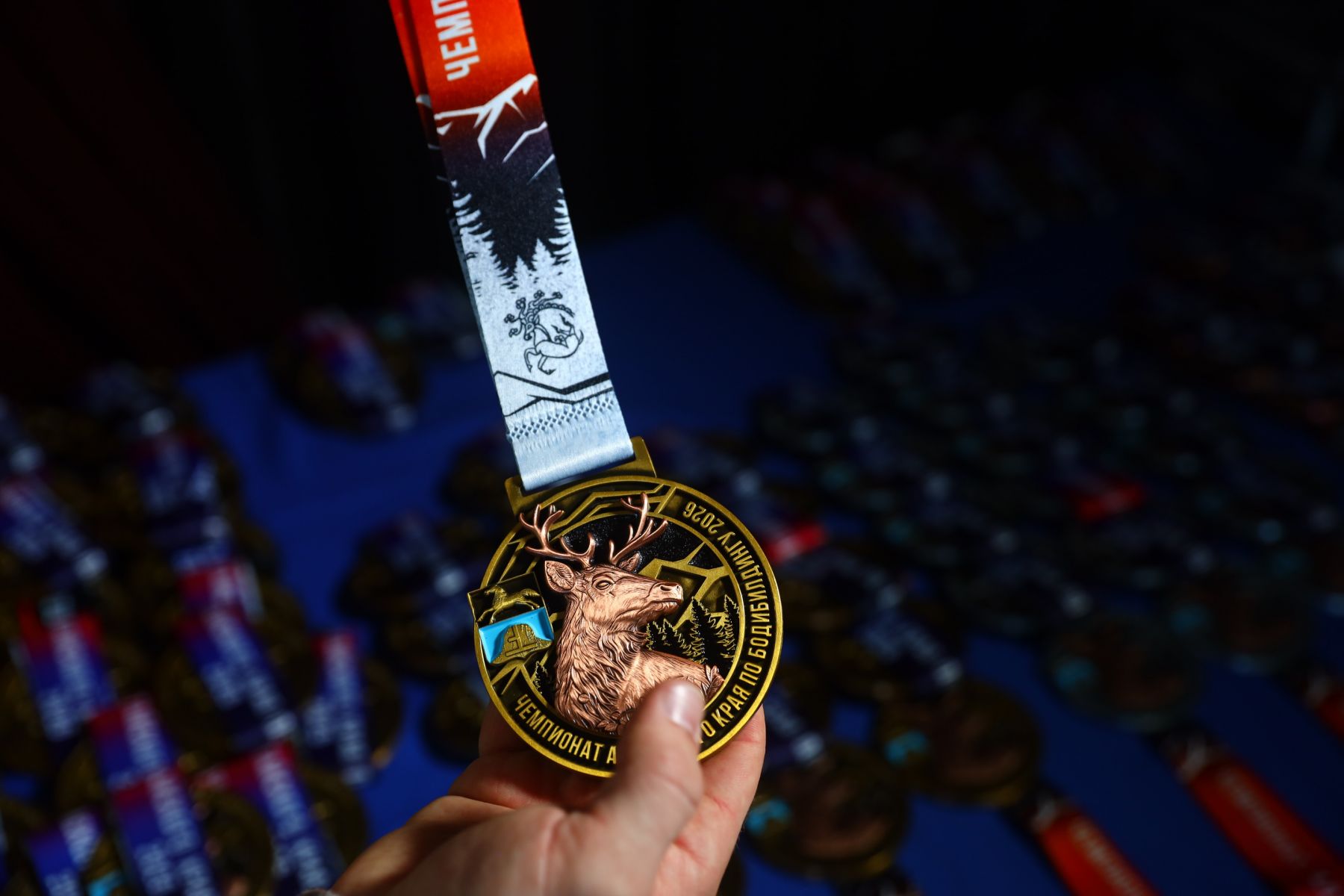 Несмотря на непогоду, чемпионат Алтайского края по бодибилдингу состоялся. 14 марта в Бийск прибыли как опытные, так и начинающие спортсмены. Организация мероприятия, как всегда, на высшем уровне – от световых эффектов, монтажа сцены до авторских медалей. Кстати, в этом году их хочется рассматривать с особенным интересом, на каждой символ чемпионата 2026 года – белый марал с золотыми рогами, изображенный на фоне звездного неба.