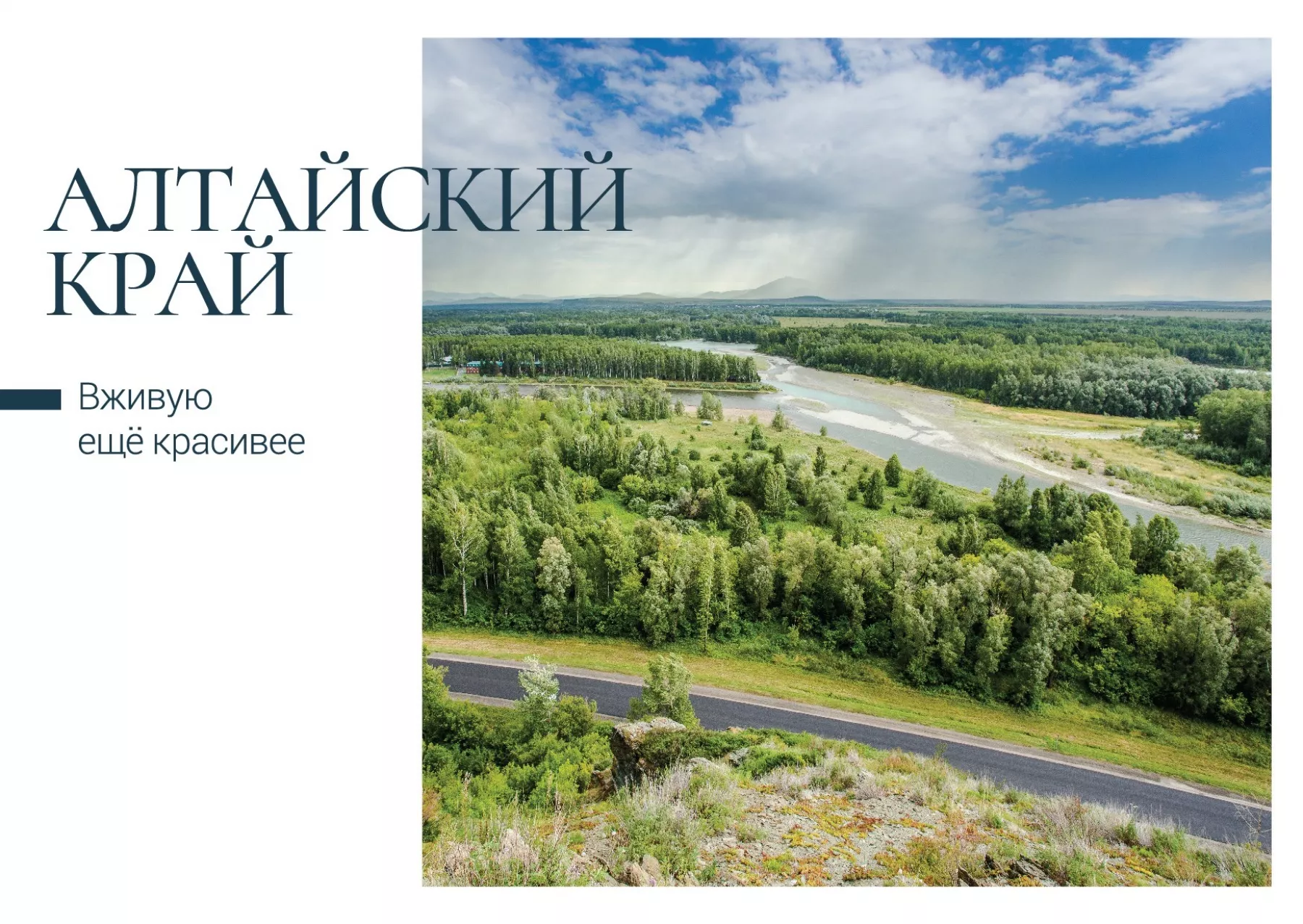Почта России и Ростуризм объявили о выпуске новой – летней лимитированной серии фотооткрыток, посвященной знаковым местам страны. Тираж популяризирует красоту 20 регионов. Каждый изображен на пяти видах открыток, выпущенных по тысяче штук. Алтайский край показан через пейзажи Чуйского тракта и «Алтайского Холмогорья», аэросъемку реки Барнаулки и озера Бурсоль, а также есть на открытках лебеди озера Светлое.