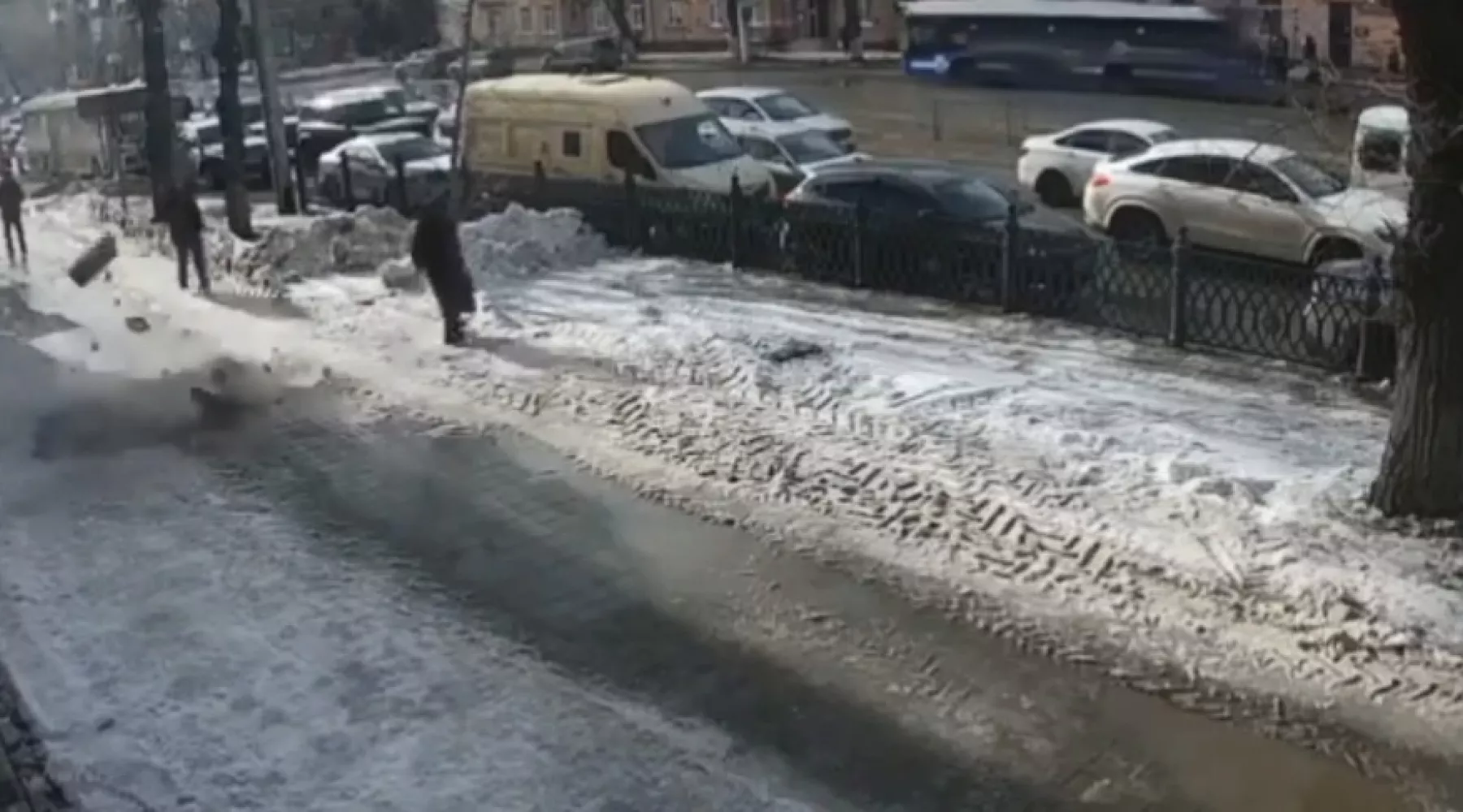В центре Барнаула на пешеходную часть обрушился фасад дома