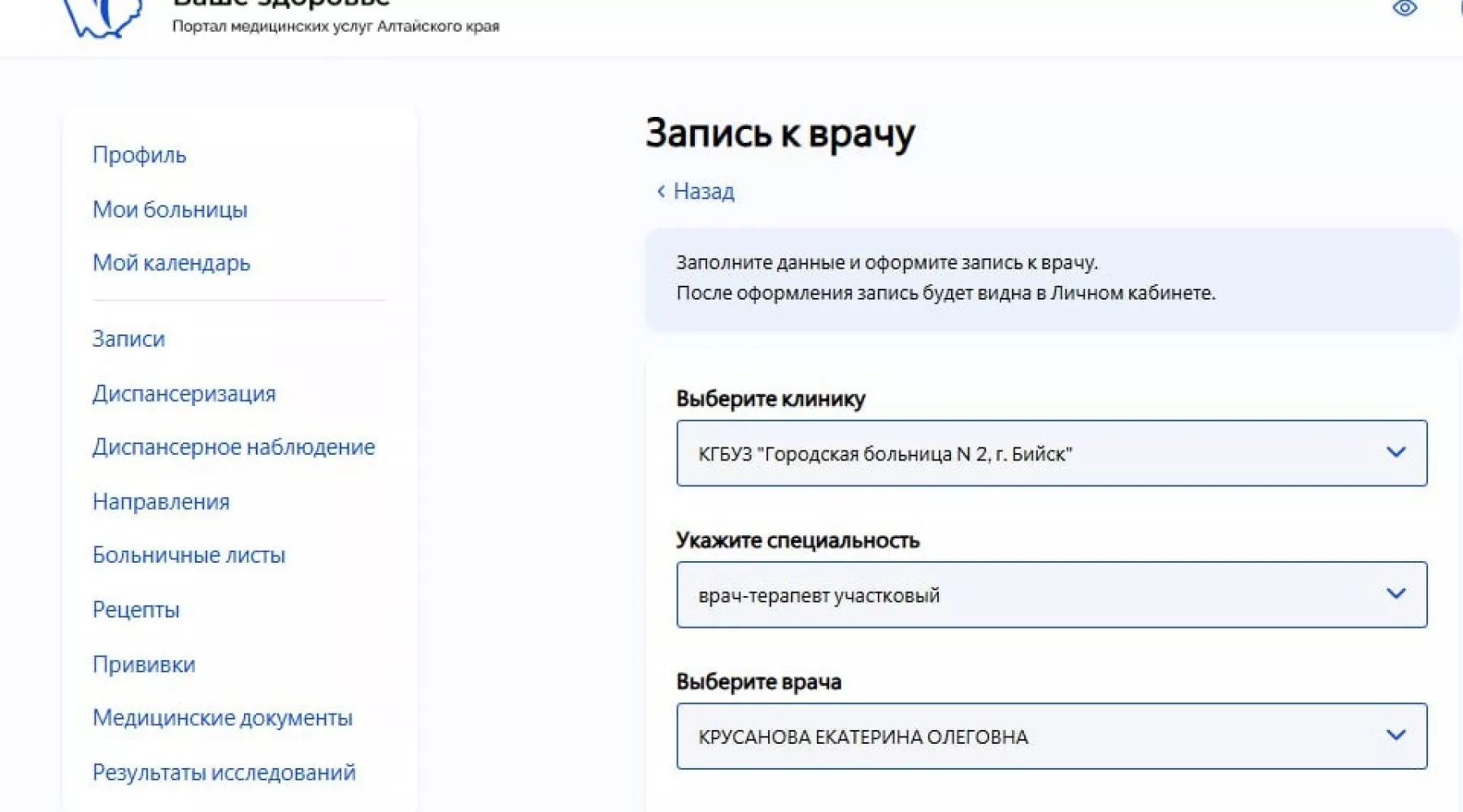 Как уточнили в горбольнице, жителям Алтайского края уже доступны следующие сервисы: