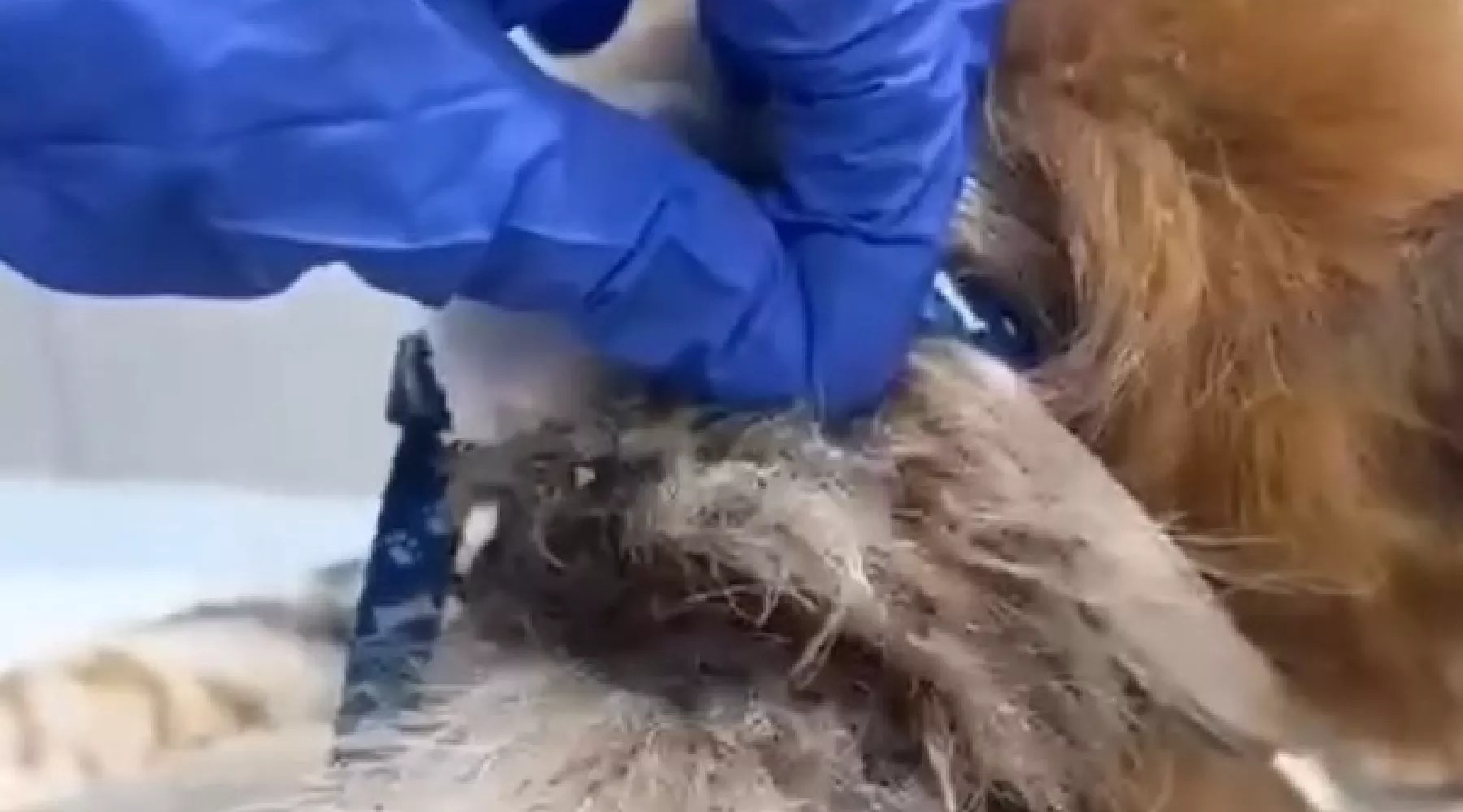 Зоозащитники первым делом попытались убрать всех червей, которые буквально сыпались из шеи пострадавшего животного.