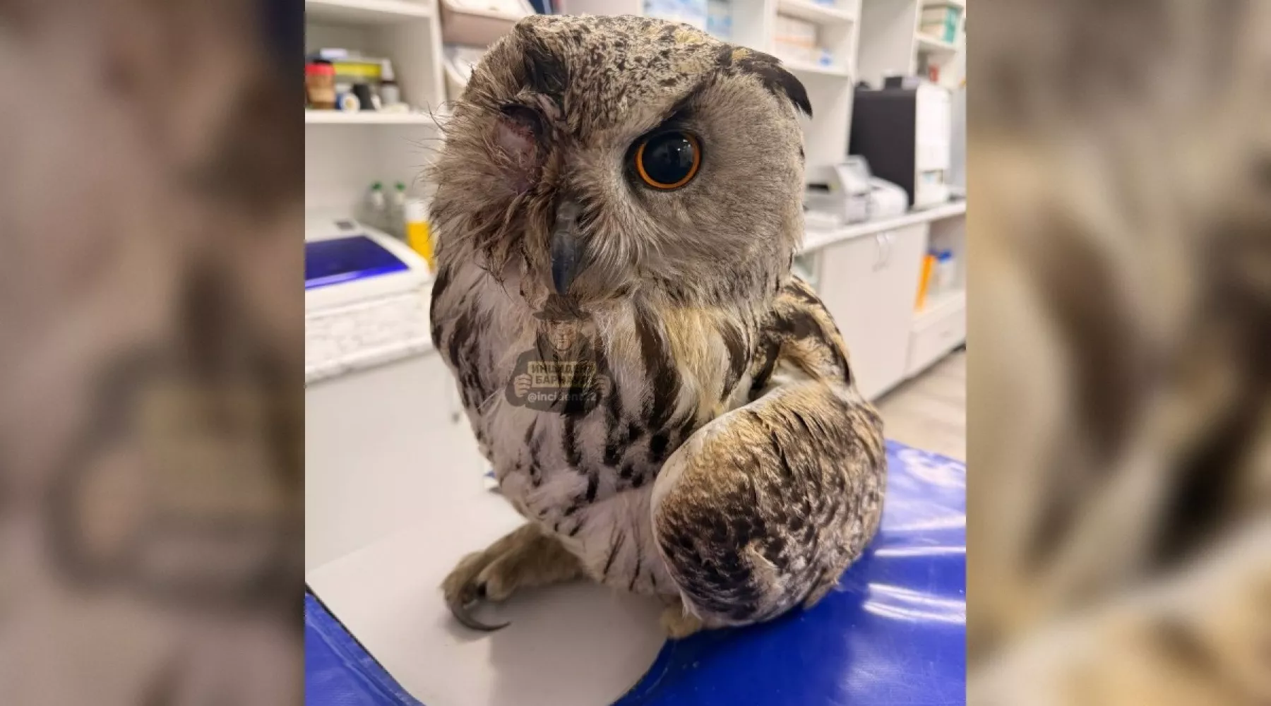 Птица получила имя Алтай и сейчас проходит лечение в барнаульской клинике. Волонтеры отмечают, что у филина контузия, из-за чего он утратил зрение и слух.